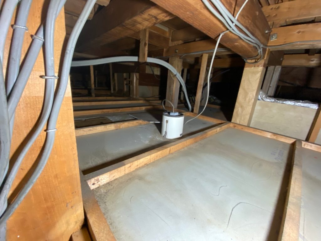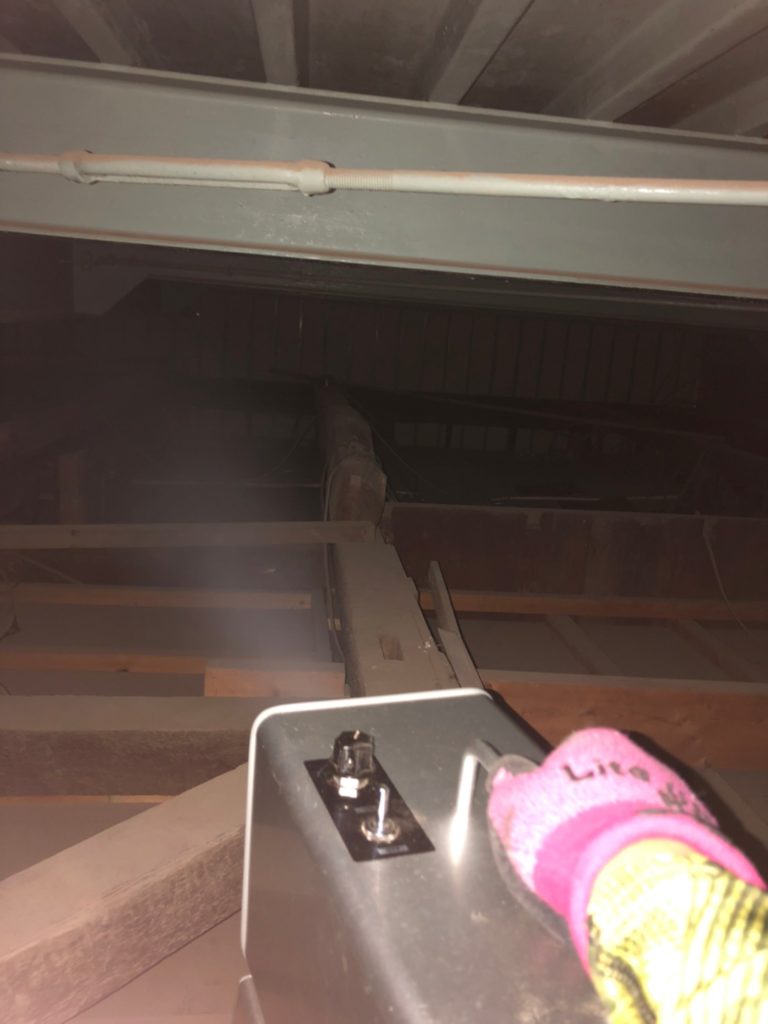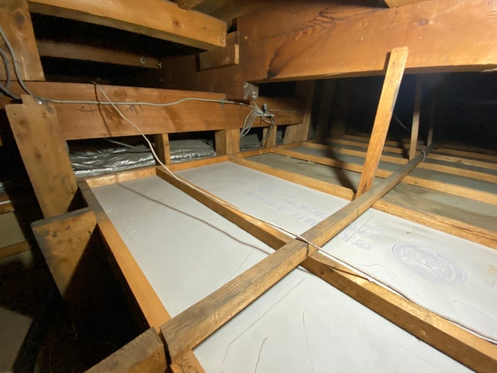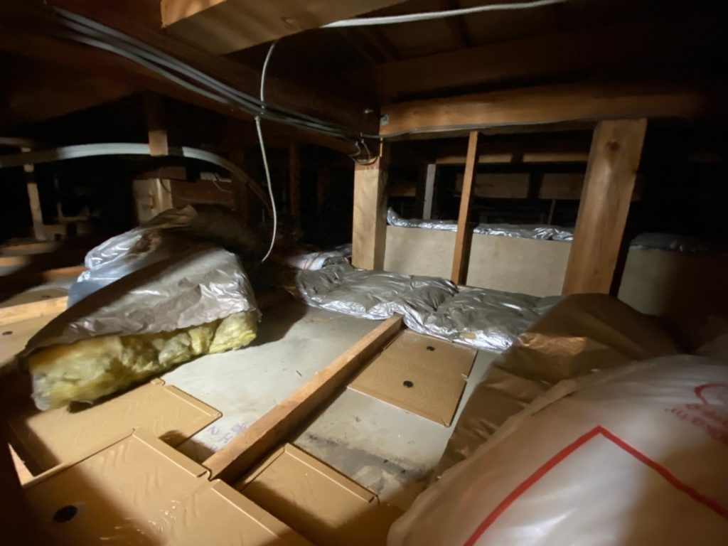 ネズミが断熱材の中にもぐりこみおそらくお客様の聞いていたのは、この断熱材をほじくっていた音かと考えられます。ネズミの口内や体毛には危険なウイルスが多い為これらの被害を受けた断熱材は新品と交換することとなりました。
