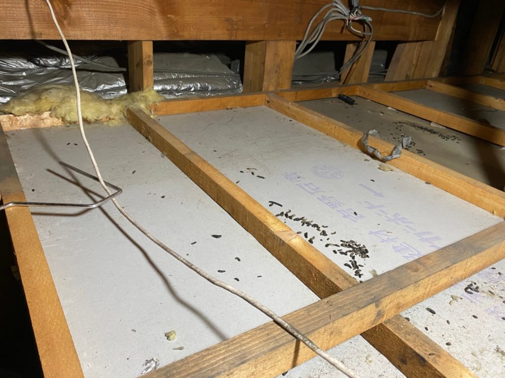 千葉市中央区で天井裏で動物の足音が聞こえ室内で1匹ネズミを見たとご相談をいただき駆除を実施しました。家主様からは1週間ほど前からカサカサという音が気になるようになったが、思い返せば半年ほど前にも音がしたことはあったと仰っていました。当社スタッフが到着し調査を行ったところ天井裏にネズミの糞が確認されネズミの仕業だったことが判断できました。