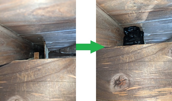 どうやらイタチはネズミを追ってお客様のお家に侵入し、狩場として使うようになったことが考えられました。