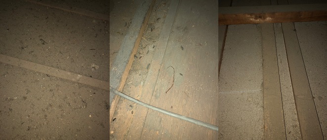 そして早速天井裏に登ると、そこにはネズミの糞とイタチの糞がありました。