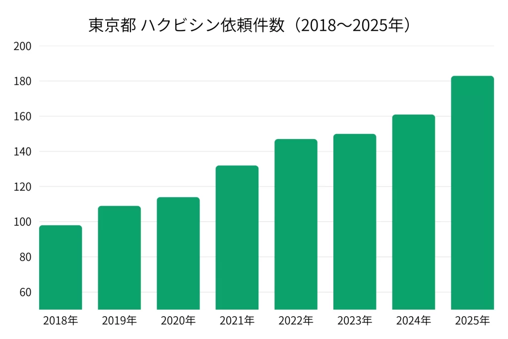 2018年には98件だった依頼が、2025年には183件にまで増加しており、