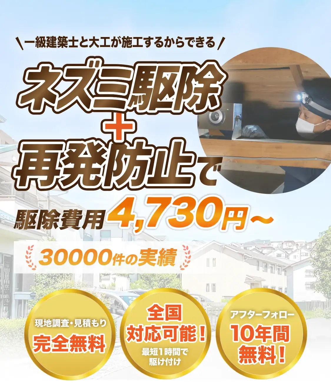 私たちは、ネズミ駆除だけでなくネズミやシロアリなどの被害でダメになった住宅の